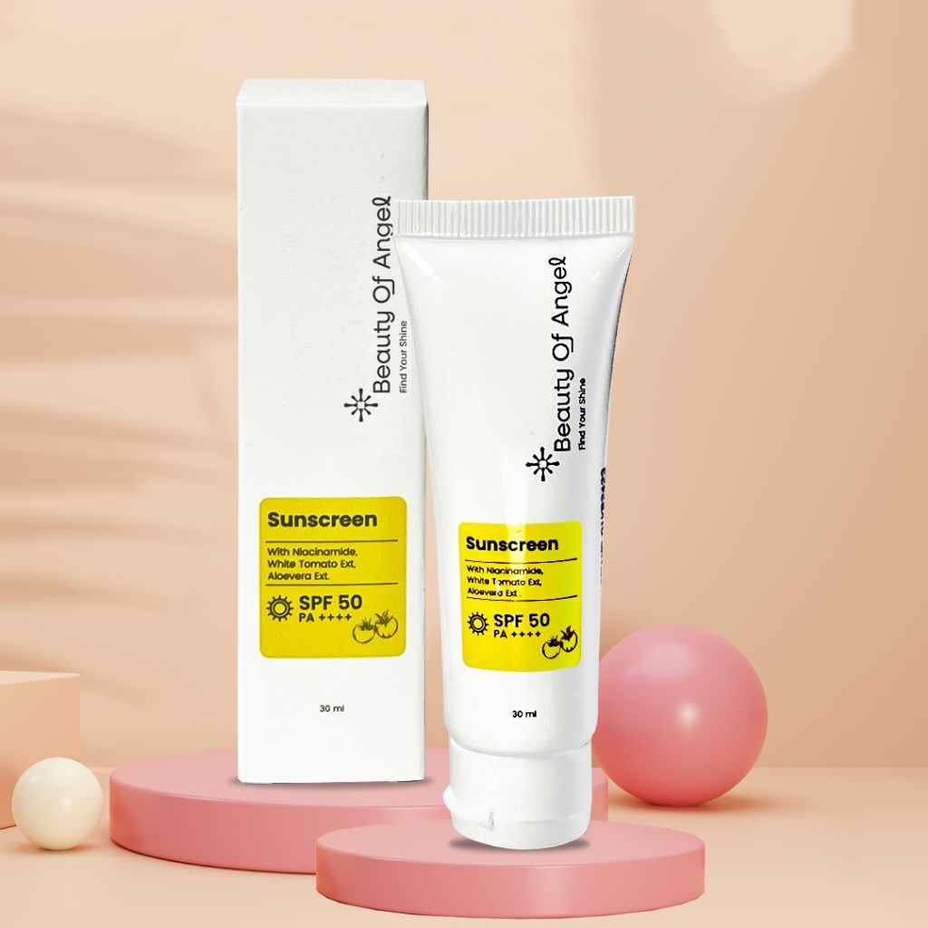 Beauty of Angel - Brightening Sunscreen Beauty of Angel Brightening Sunscreen SPF 50 yang melindungi kulit dari efek buruk sinar matahari dan merawat kulit agar tetap halus dan lembut. Karena, produk ini memiliki kandungan Niacinamide,white tomato ext, aloevera ext .Kabar baiknya lagi, Brightening Sunscreen ini juga bisa Mencerahkan, melembabkan dan melindungi kulit dari paparan sinar matahari.