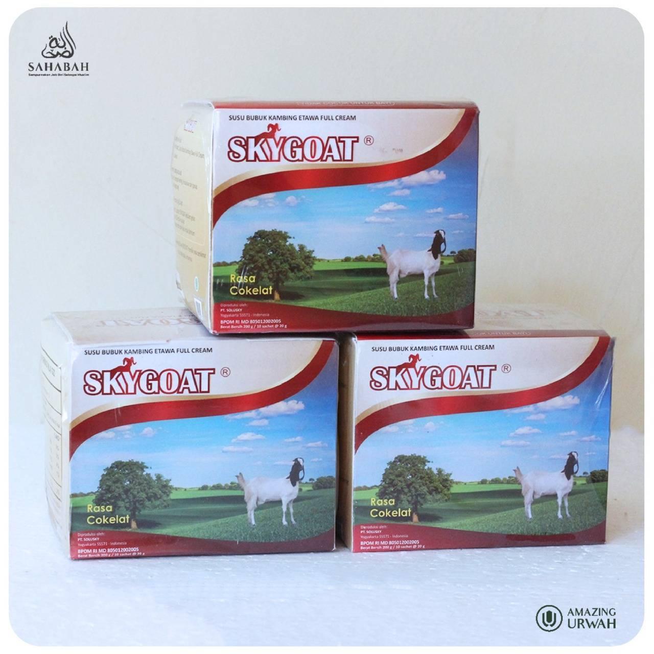 BPOM MD : 803112006005MUI : 12030003301213Susu kambing Etawa Sky GoatEXPIRED : November 2024Komposisi: Krimer Nabati, Susu Bubuk Kambing Etawa Full Cream, Gula, Madu Propolis.Membantu melancarkan sistem pencernaanMembantu mengobati alergi pada kulitMenambah stamina dan daya tahan tubuhDapat mencegah kerapuhan pada tulangManfaat Susu kambing Etawa Sky Goat untuk pengobatan memang sudah tidak diragukan lagi. Dari hasil penelitian membuktikan bahwa susu kambing etawa ternyata memiliki khasiat dan manfaat yang lebih baik dari susu yang beredar dipasaran atau susu sapi. Banyak yang mengakui bahwa khasiat susu kambing etawa hampir setara dengan air susu ibu (ASI).Hasil riset juga membuktikan bahwa tekstur lemak yang lebih lembut dan halus yang terkandung di dalam susu kambing etawa lebih mudah dicerna serta aman bagi pencernaan dan sangat berguna bagi kesehatan tubuh. Susu kambing Etawa memiliki banyak kandungan nutrisi yang baik bagi kesehatan, diantaranya adalah sodium (Na) yang bermanfaat memberikan keseimbangan antara kalsium dengan kalium di dalam tubuh, Fluorin (F) yang baik untuk para pederita TBC asma/ atau sesak nafas, dan Fosfor (P) yang baik untuk otot-otot tubuh kita, serta masih banyak lagi nutrisi penting lainnya.Skygoat merupakan salah satu produk susu kambing etawa bubuk yang sudah mendapatkan ijin resmi BPOM dan Halal LP-POM MUI. Skygoat sudah cukup dikenal di Indonesia khususnya di Jawa, dan penjualan susu kambing etawa bubuk organik bisa dikatakan memiliki curve yang meningkat tiap tahunnya.
