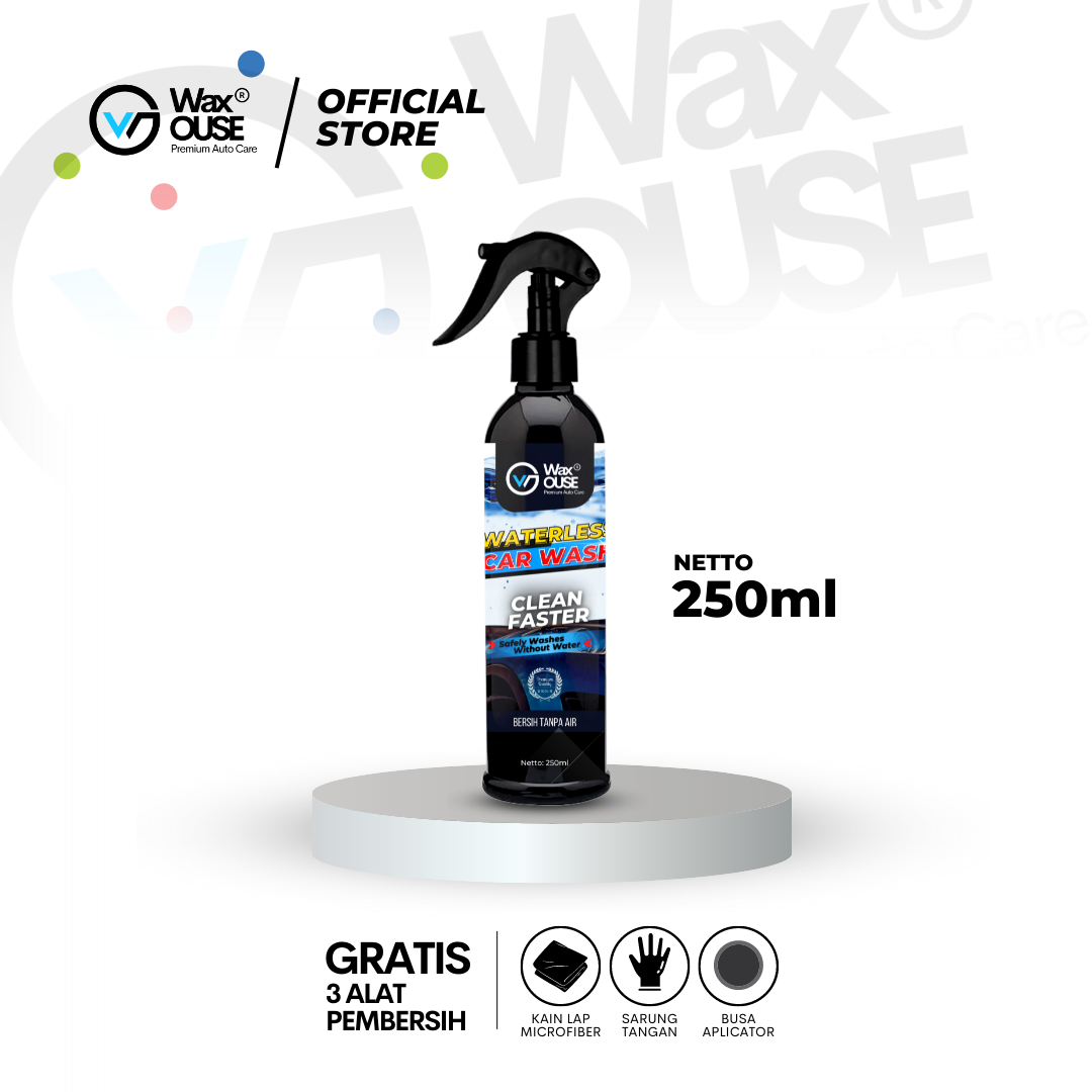 WATERLESS CAR WASH DAN WAX, CUCI MOBIL & MOTOR INSTANT TANPA AIR, PEMBERSIH BODY MOBIL MOTOR Waterless Car Wash adalah produk yang di rancang khusus untuk kamu yang ingin membuat mobil terlihat lebih bersih dan mengkilap tanpa harus mencuci. Dengan Waterless Car Wash ini kamu tidak lagi perlu repot untuk menghilangkan atau membersihkan mobil kamu dari debu, cukup semprotkan cairan Waterless Car Wash kendaraan langsung bersih seketika.Manfaat & Kegunaan Waterless Car Wash:- Membuat tampilan mobil lebih kilap dan bersih- Memberikan efek kilap serta Hydrophobic / Efek daun talas.- Mengangkat debu dan menghilangkan kusam akibat debu yang menempel.- Sangat mudah digunakan dan ringkas untuk dibawa selama bepergian.- Debu tidak mudah menempel.KEMASAN:Botol Spray 250 mlUKURAN PACKAGING:23 X 13 X 10 CMBAHAN:WaterbaseDimensi produk: 23cm (p) x 13cm (l) x 10cm (t)