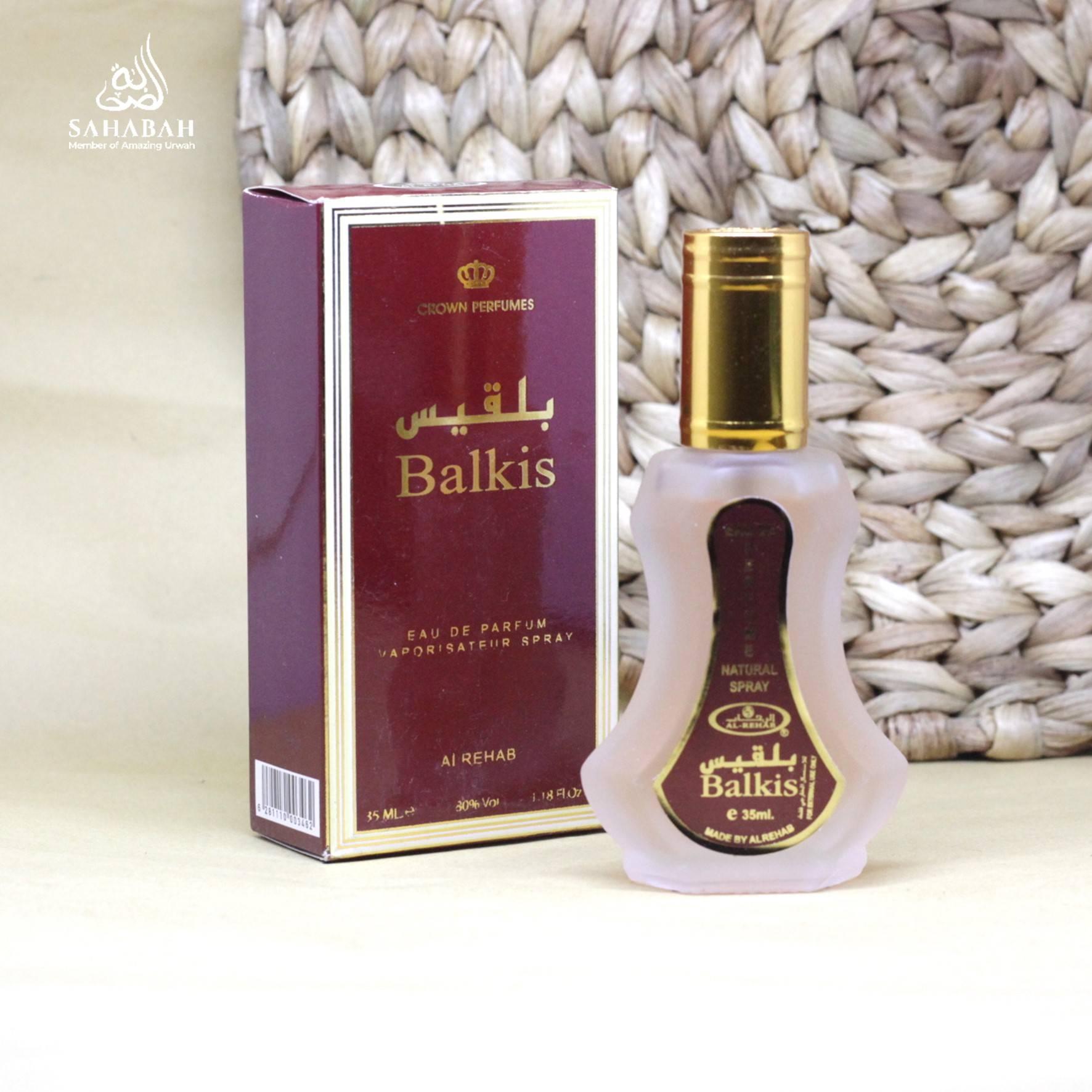 BALKIS BOTOL SPRAY AL REHAB by SAHABAH STOREKategori aroma : FloralDeskripsi varian : Segar manis dari aroma bunga lili, kasturi putih, serta vanilla bersatu didalam varian Balkis. Di dasar aroma tercipta keharmonisam dari bunga violet melati, mdu, dan cipratan dari citrus.Unsur aroma : floral powdery oudRekomendasi untuk :women & menOriginal King Saudi Arabia, Limited stockCocok untuk ibadah sholat, kegiatan sehari-hari, kajian dllAl Rehab juga sering menjadi pilihan untuk Oleh-oleh haji & umrahCara Pemakaian :- Semprotkan pada daerah pulse tubuh seperti pergelangan tangan bagian dalam, siku dalam dan leherCara Penyimpanan :- Simpan pada tempat yang sejuk dan jauhkan dari sinar matahari langsungKomposisi: Alcohol Denatured, Parfum, Aqua, etc (tertera di box parfum)Tanggal produksi: 16 Januari 2021Bureau Veritas : GMP 22716:2007Ukas Management Systems : ISO 9001:2008Daya simpan : 36 bulanSelamat datang di SAHABAH STORE, kami menjual berbagai kebutuhan muslim seperti Kurma, Parfum muslim, Superfood/Cemilan arab, Air Zam-zam, Peci, Herbal dan perlengkapan ibadah lainnya. Kepuasan dan kenyamanan konsumen menjad komitmen kami"Happy Shopping, support toko kami dengan berikan ulasan terbaiknya yaa ^_^"