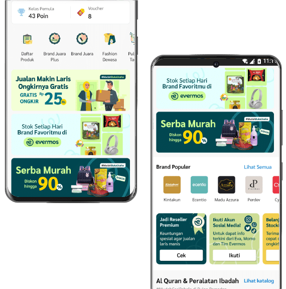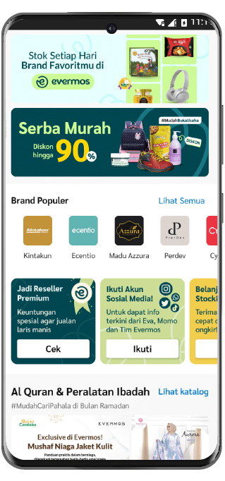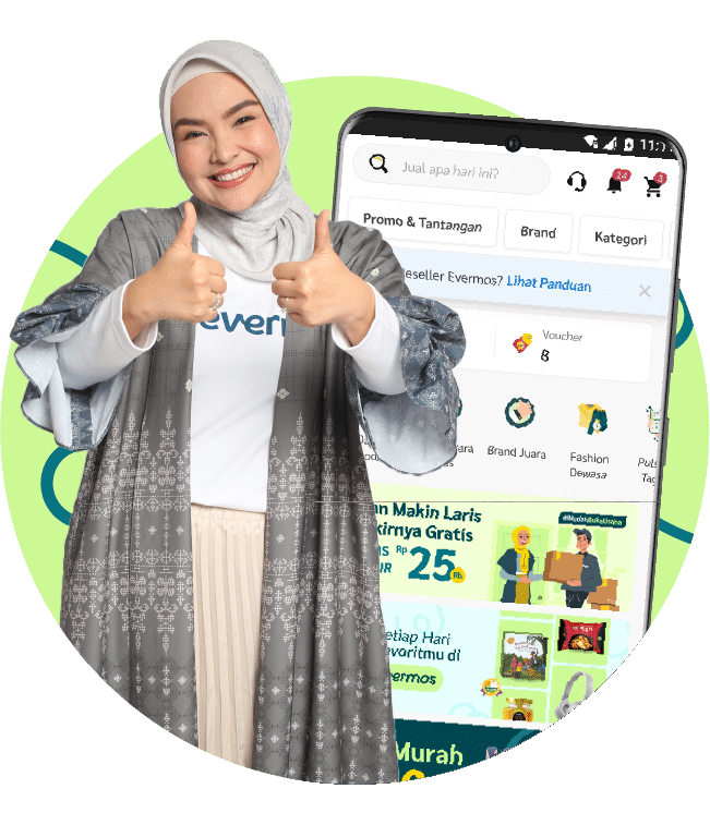 Evermos adalah Aplikasi untuk Jualan Ribuan Produk termasuk kebutuhan muslim. Dengan menjadi Reseller di Evermos anda bisa mulai mendapatkan penghasilan tambahan tanpa stok produk. Anda bisa langsung punya bisnis toko online sendiri dan dapatkan komisi dari Evermos.