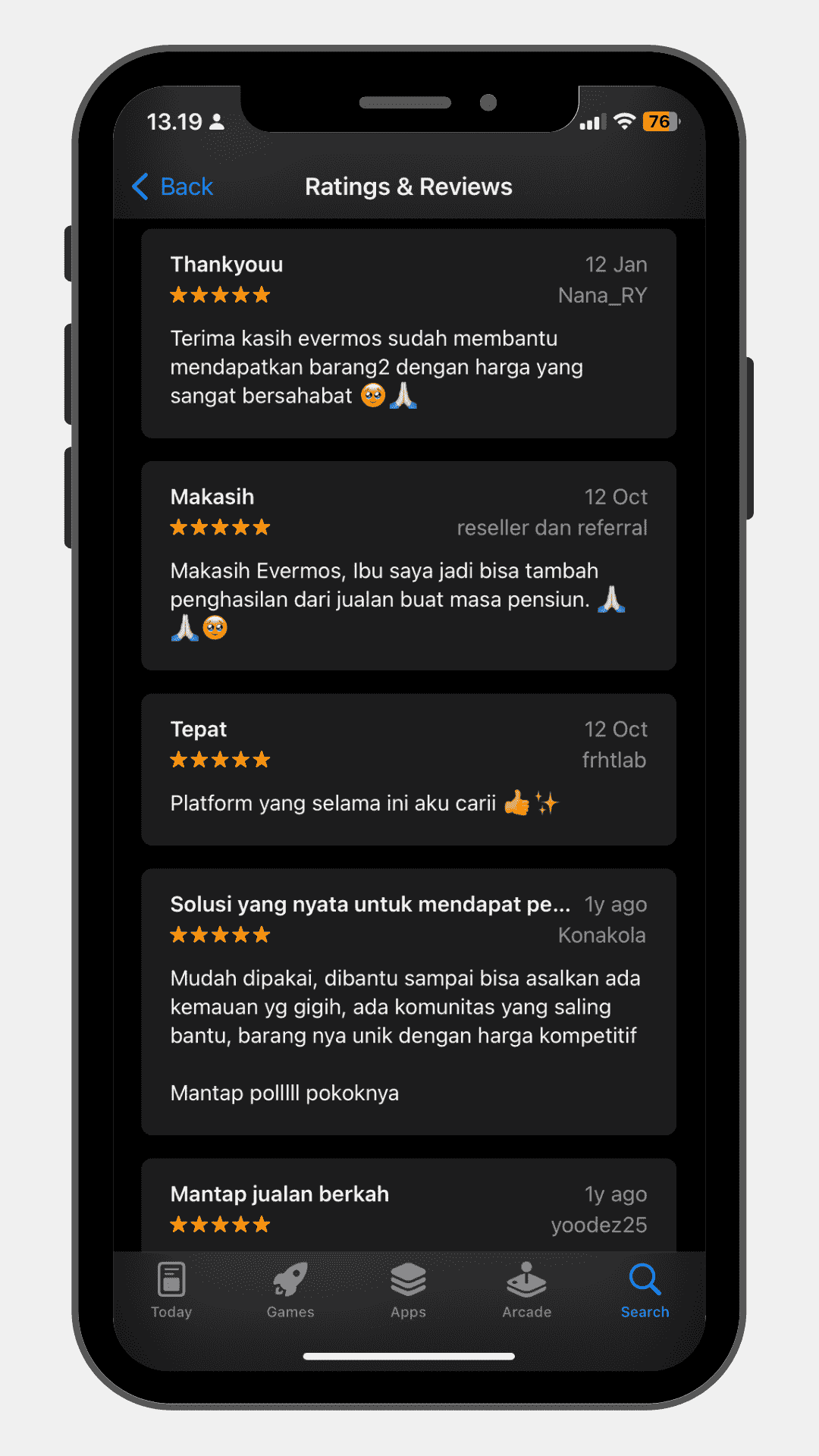 Di Evermos, kita menargetkan sampai dengan 35% komisi dari harga produk, dan tidak ada limit pesanan, banyak pesanan = banyak komisi!