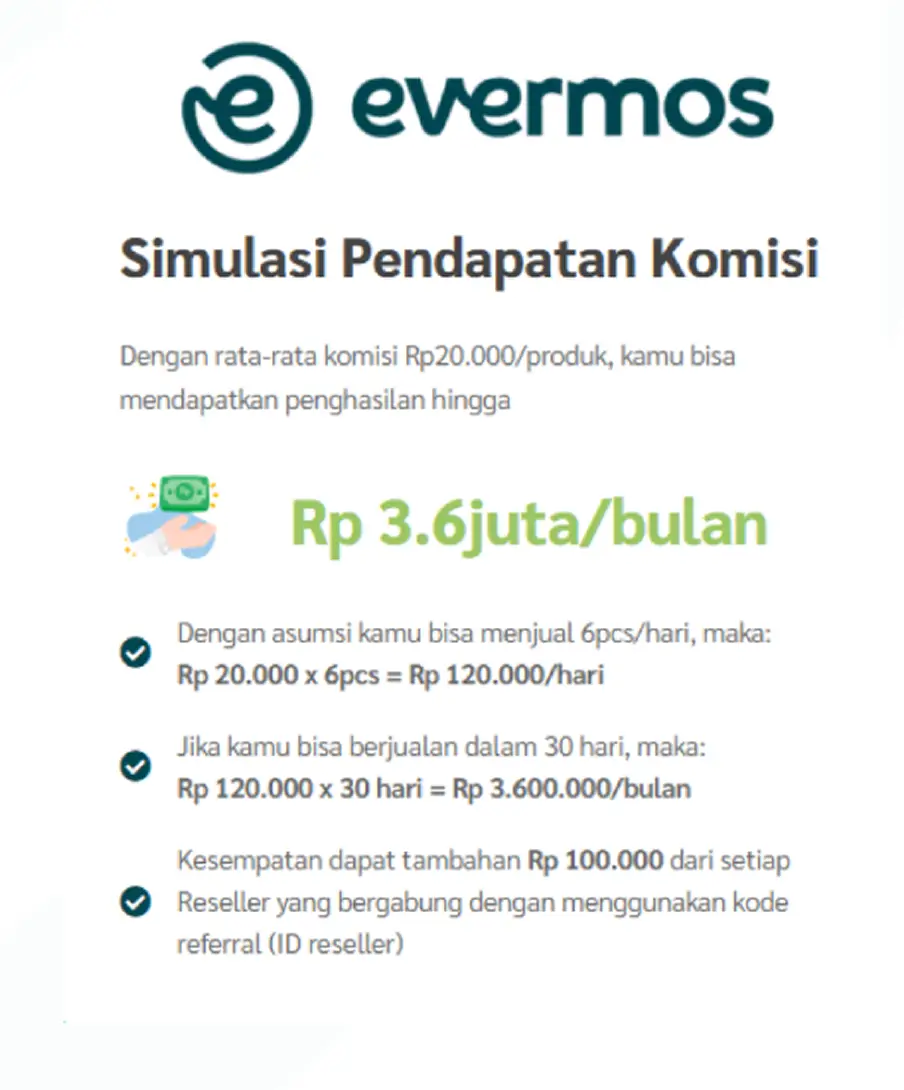 Di Evermos, kita menargetkan sampai dengan 35% komisi dari harga produk, dan tidak ada limit pesanan, banyak pesanan = banyak komisi!